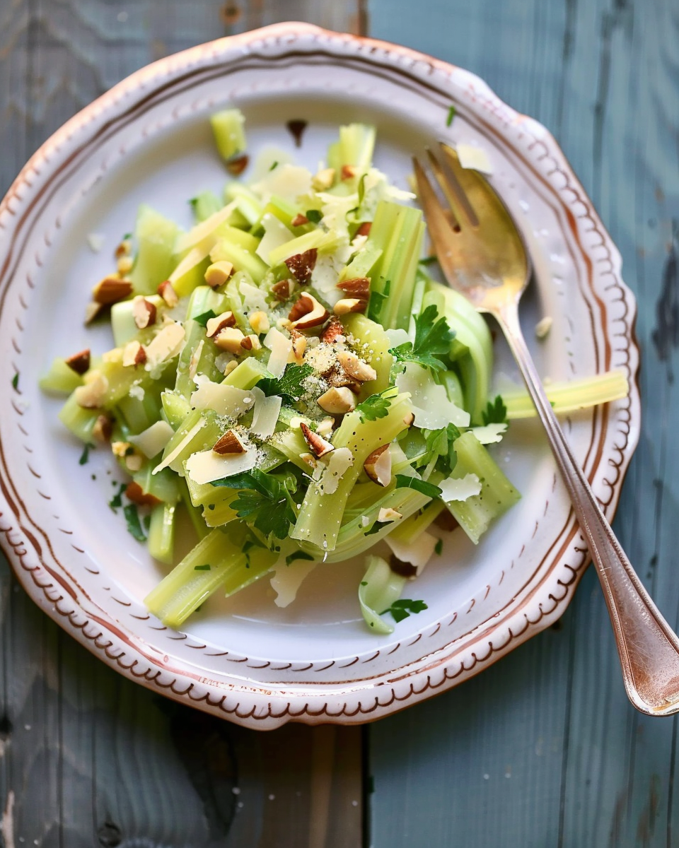 Looking for a crisp, clean, and refreshingly different side? Say hello to your new favorite: Celery Leaf Salad with Parmesan. It’s bright, crunchy, and full