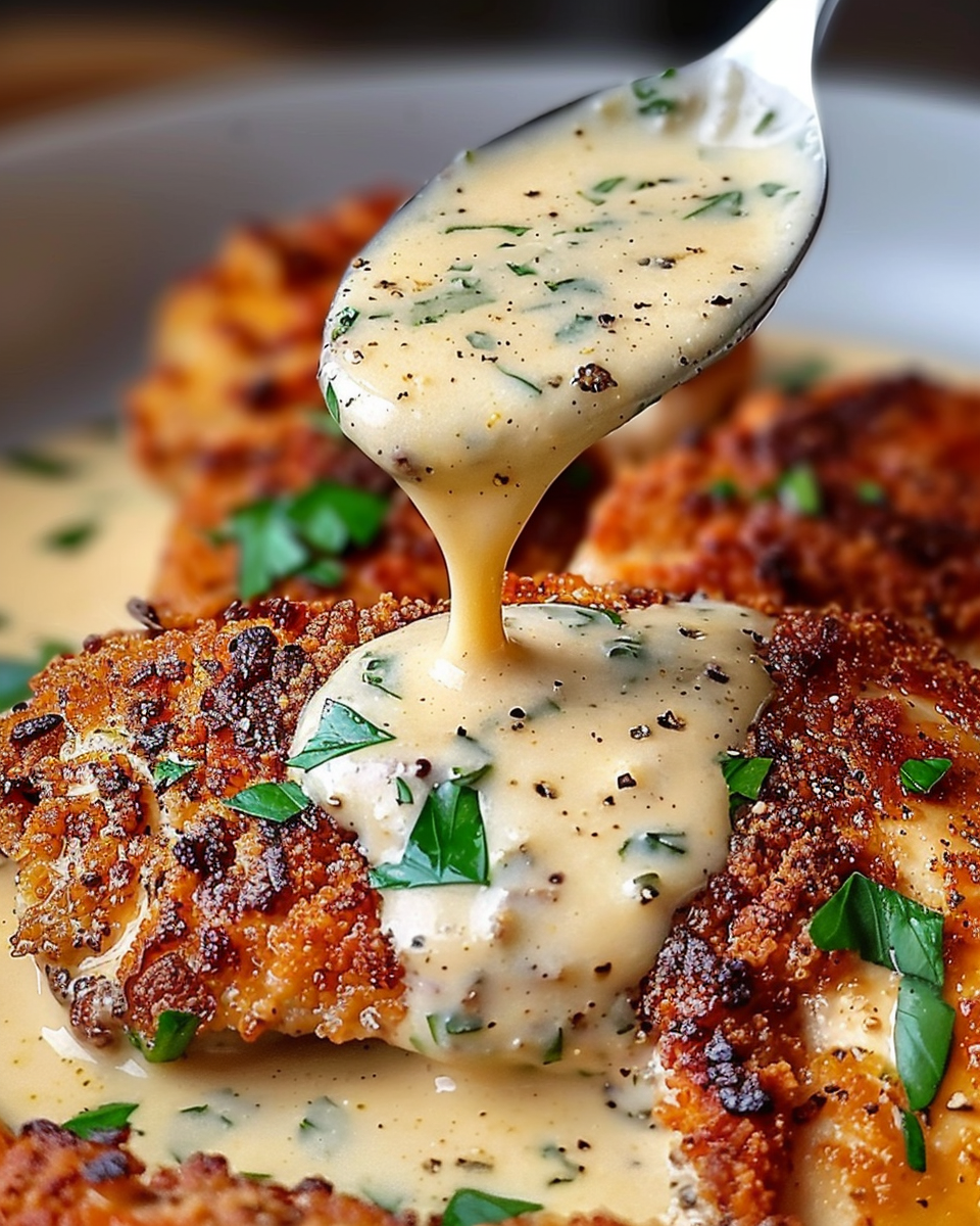 There’s nothing quite like the irresistible combination of crispy, golden Parmesan-crusted chicken paired with a rich and velvety garlic cream sauce. This dish delivers the