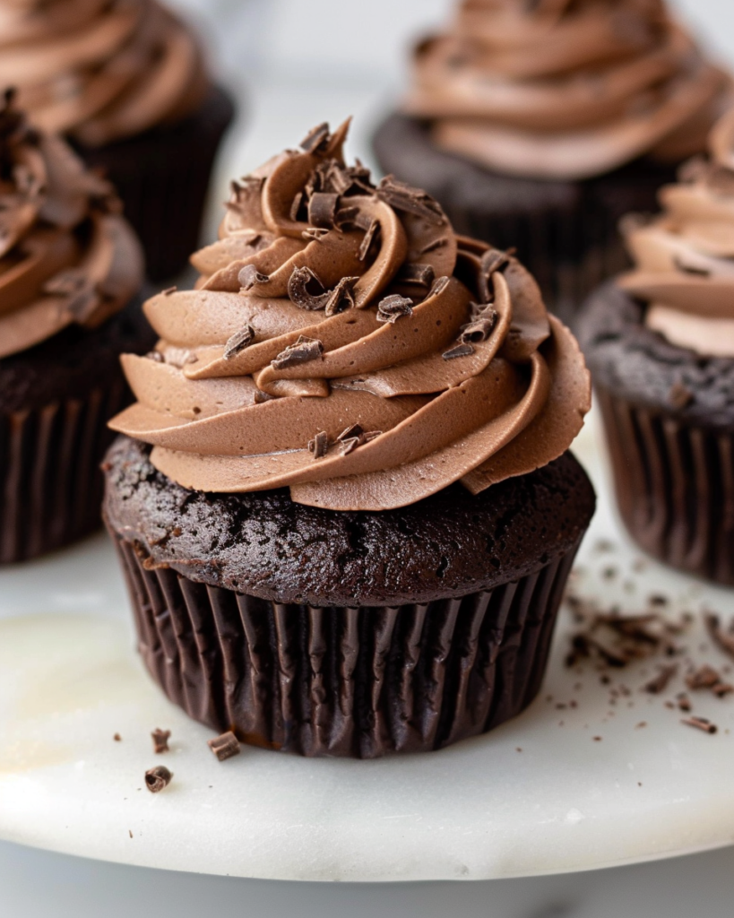 And of course, no cupcake is complete without frosting! This homemade chocolate buttercream is rich, smooth, and utterly indulgent. Made with creamy butter, unsweetened cocoa powder, powdered sugar, and heavy cream, it’s the perfect finishing touch.