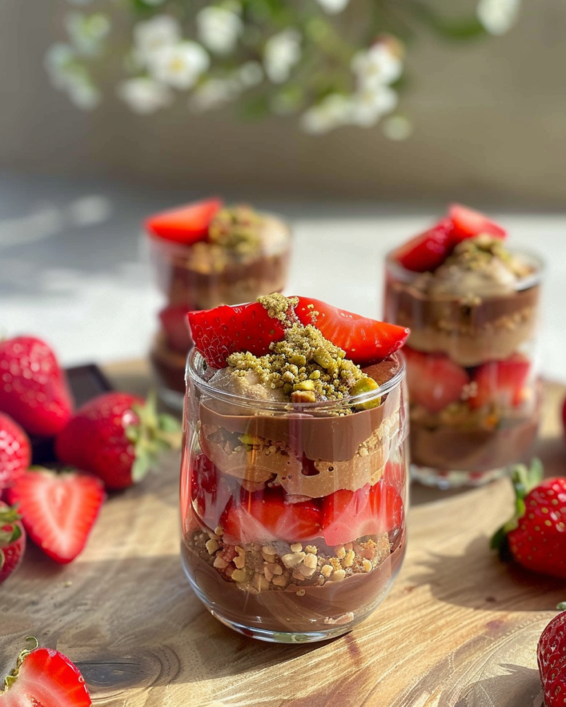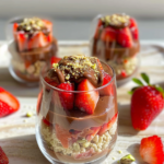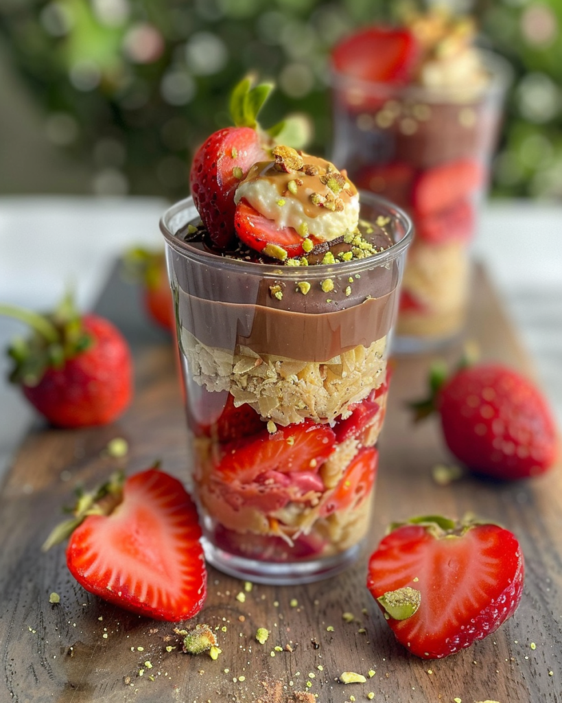 This recipe puts a delightful twist on the viral Dubai chocolate bar, combining layers of velvety chocolate, juicy strawberries, crisp kataifi pastry, and creamy pistachio filling. Each bite is a perfect balance of crunch, sweetness, and nuttiness, making these elegant treats ideal for special occasions or an indulgent dessert.
