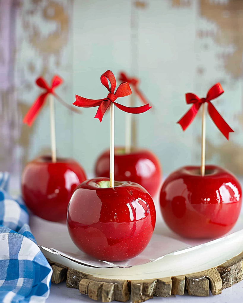 Dip the Apples – Carefully swirl each apple in the syrup, letting the excess drip off.