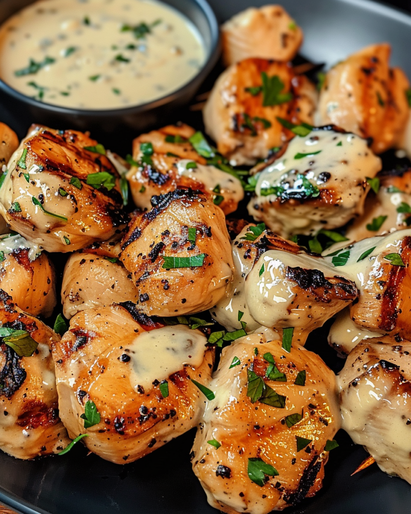 Grilled Chicken Bites with Creamy Garlic Sauce