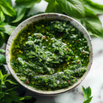 Bursting with fresh herbs and bold flavors, this classic Argentinian chimichurri sauce is a must-have for any kitchen. It’s packed with parsley, cilantro, and basil, creating a bright and zesty condiment that pairs beautifully with grilled meats, roasted veggies, and even cheese. While it’s often served with steak and chicken, don’t stop there—this sauce is incredibly versatile!