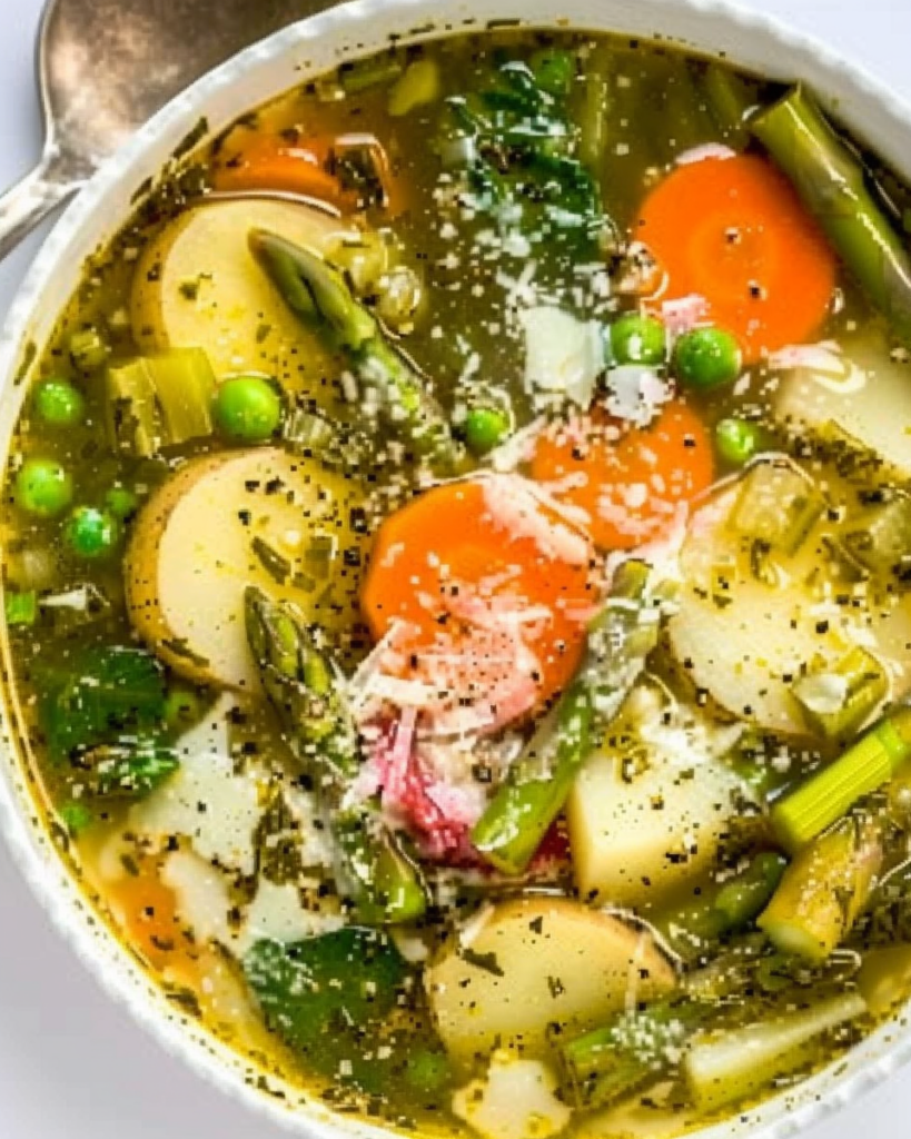 Welcome spring with a fresh twist on the classic minestrone! This vibrant, veggie-packed soup swaps the traditional tomato base for a lighter, brighter flavor profile that’s all about the season’s best produce. Think tender mini potatoes, crisp asparagus, sweet peas, and a generous swirl of herby pesto—all finished with a sprinkle of sharp parmesan for that perfect savory bite. It’s the kind of nourishing one-pot meal that’s comforting yet refreshingly light—and best of all, it’s ready in under 30 minutes.