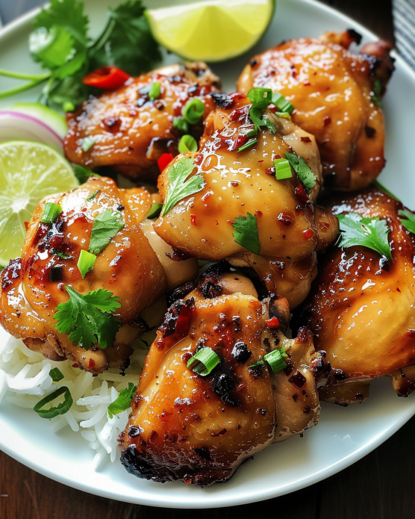 - Garnish and Serve: Plate the chicken and vegetable mixture, and garnish with fresh cilantro. Serve with a side of steamed jasmine rice, lime wedges, and any additional sides such as fresh vegetables or a simple salad for added crunch.
